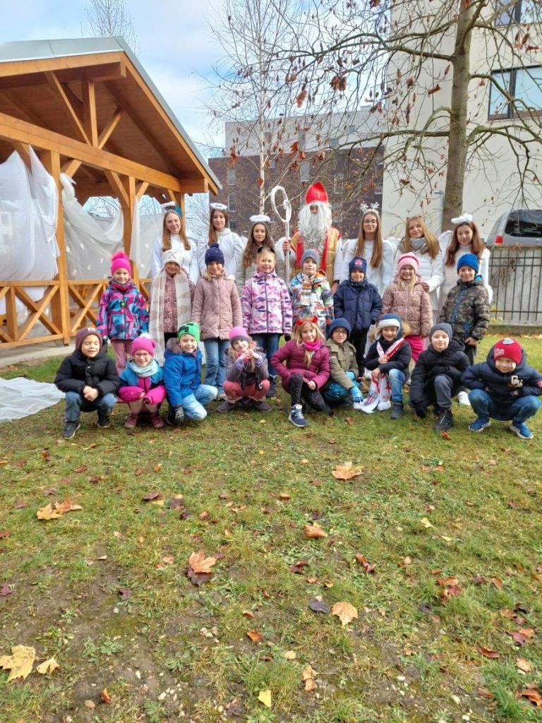 Zpráva z 2.B: O postavě Mikuláše jsme si povídali, též o čertovi a andělovi. Děti se na andělskou stezku moc těšily. Stezka byla připravena opravdu moc zajímavě, plná úkolů, děti to moc bavilo. Mikuláš je odměnil sladkostmi, ale jedna brambora tam také byla.