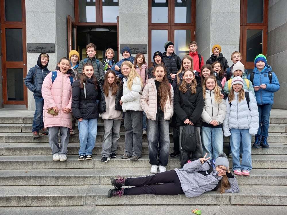 V rámci výuky přírodopisu jsme 13. 12. 2024 se žáky 7. A navštívili Národní muzeum v Praze. Děti si mohly ve čtyřech výstavních sálech prohlédnout expozici Okna do pravěku a obdivovat jedinečné exponáty, které představují světové milníky v poznání historie života na Zemi, a to z dob od prvohor až po čtvrtohory. Seznámily se zde s prvohorními živočichy nebo viděly vzácnou nejstarší suchozemskou rostlinu světa Cooksonia barrandei, která pochází z doby před čtyřmi sty třiceti miliony let. Jsou zde také jedni z nejstarších známých plazů – druhohorní mosasauři, náš jediný český dinosaurus Burianosaurus augustai nebo děsivě vyhlížející šavlozubý tygr. V závěru expozice se dětem líbil mamut s malým mamuťátkem v životní velikosti. Součástí expozice jsou také animace, které jednoduše vysvětlují složité procesy vzniku fosílií. Zároveň jsou v každé místnosti haptické exponáty (odlitky reálných fosílií), na které si děti mohly sáhnout. Expozice je také doplněna o interaktivní lavice, kde je komiksovou formou představena paleontologie a nejznámější exponáty.