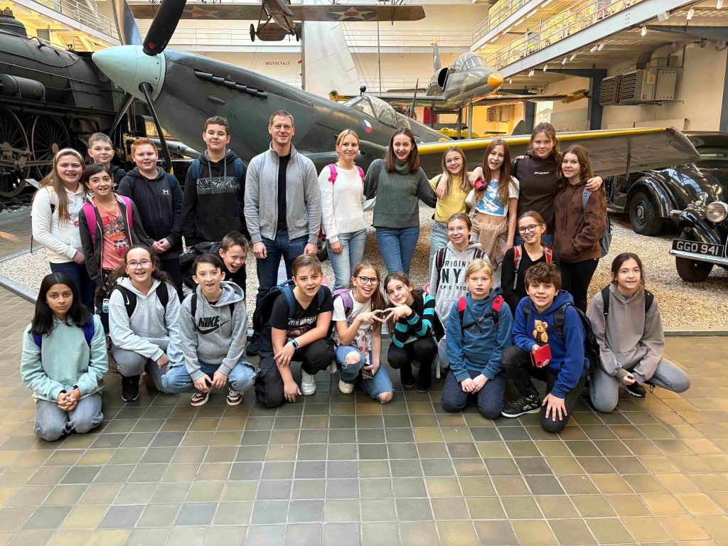 V prosinci a lednu 2024 jsme v rámci výuky fyziky se žáky 6. ročníku navštívili Národní technické muzeum v Praze. Děti si prohlédly expozici Doprava, věnovanou památce průkopníků na zemi, ve vodě i ve vzduchu. Prohlédly si to nejlepší ze sbírky automobilů, motocyklů a jízdních kol a mimořádné exponáty z dějin letectví. Nahlédly do dějin železniční i lodní dopravy a vývoje hasičských stříkaček. Jako výstup z této expozice děti vypracovaly pracovní listy. Dále jsme se přesunuli do expozice Astronomie, která seznamuje návštěvníky s historií astronomie a představuje cenné předměty ze sbírek NTM. Vystaveno je na 220 přístrojů a pomůcek astronomů, geometrů, navigátorů, počtářů a kartografů z 15. až 21. století. Následovala expozice Hornictví, která mapuje 6 000 let dlouhý úsek (od paleolitu po současnost) zdokonalování dobývací techniky včetně současné báňské techniky od českých výrobců. Děti si mohly vyzkoušet žáruvzdorný oblek i s helmou. Expozice Měření času zachycuje vývoj hodinářského řemesla od 15. století a představuje časoměrné přístroje od nejstarších typů až po přístroje sestavené za využití nejmodernějších technologií. Po expozici Měření času jsme si prohlídli expozici Technika v domácnosti, která zajímavým způsobem vysvětluje vývoj mechanických, elektrických, plynových i jiných „pomocníků v domácnosti“, techniky usnadňující hygienu, úklid, praní a žehlení, šití a úpravu oděvů, přípravu pokrmů od poloviny 19. století do současnosti a pokračovali do expozice Tiskařství, která připomíná prostor staré tiskárny. Děti se zde dozvěděly o vývoji výroby tiskového písma, poznaly hlavní tiskařské techniky i české osobnosti, které významně přispěly k rozvoji tiskařství.