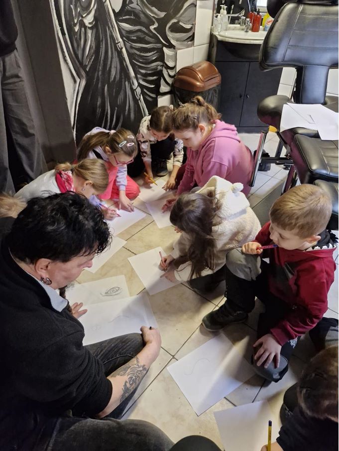 Ve čtvrtek děti s paní vychovatelkou Ivanou navštívily tetovací studio, kde jim pan Foukal vysvětlil techniku kresby a učil je kreslit oko. Děti odcházely domů s dárečkem v podobě kresby dle výběru dětí.