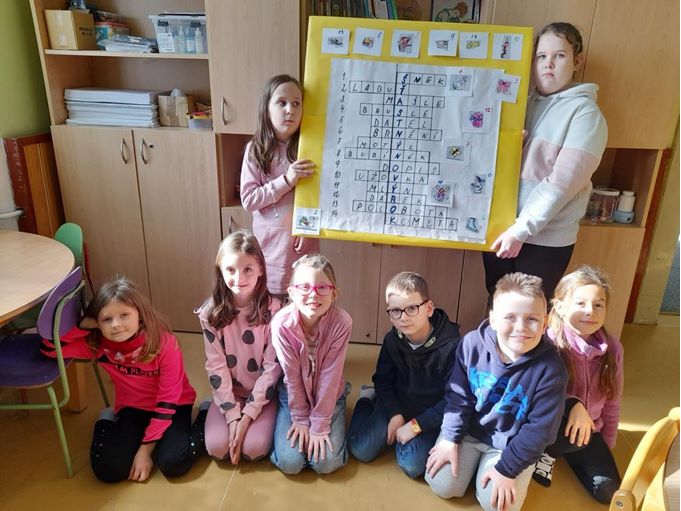 V pondělí, 1. den jarních prázdnin, si paní vychovatelka Laďka připravila pro děti velkoformátovou tajenku, různé další doplňovačky a omalovánky.