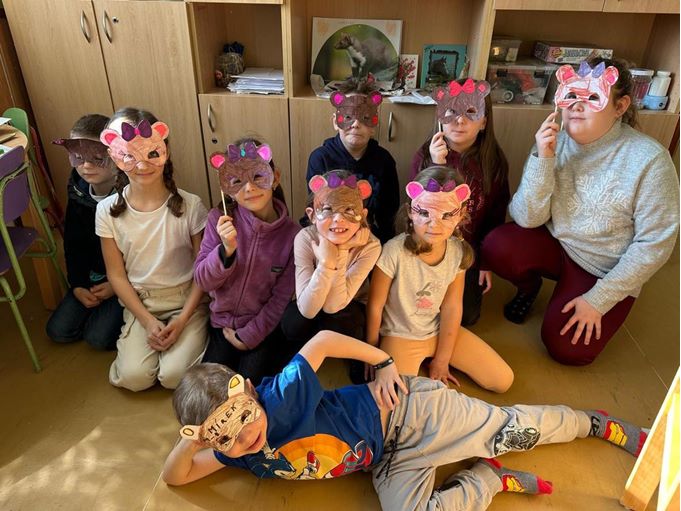 Úterní den začaly děti společně s paní vychovatelkou Klárou různými tvořivými aktivitami, kdy si vyrobily masku medvěda a zahrály si medvědí pexeso. Medvědí dopoledne pak završily děti procházkou za medvědem Kubou na Městskou horu.